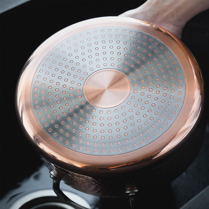 三層鍋體一體壓制成型,工藝更精細,結(jié)實耐用,復合鍋底導熱均勻,節(jié)能高效,同時克服銅鍋缺點,可適用于所有爐具